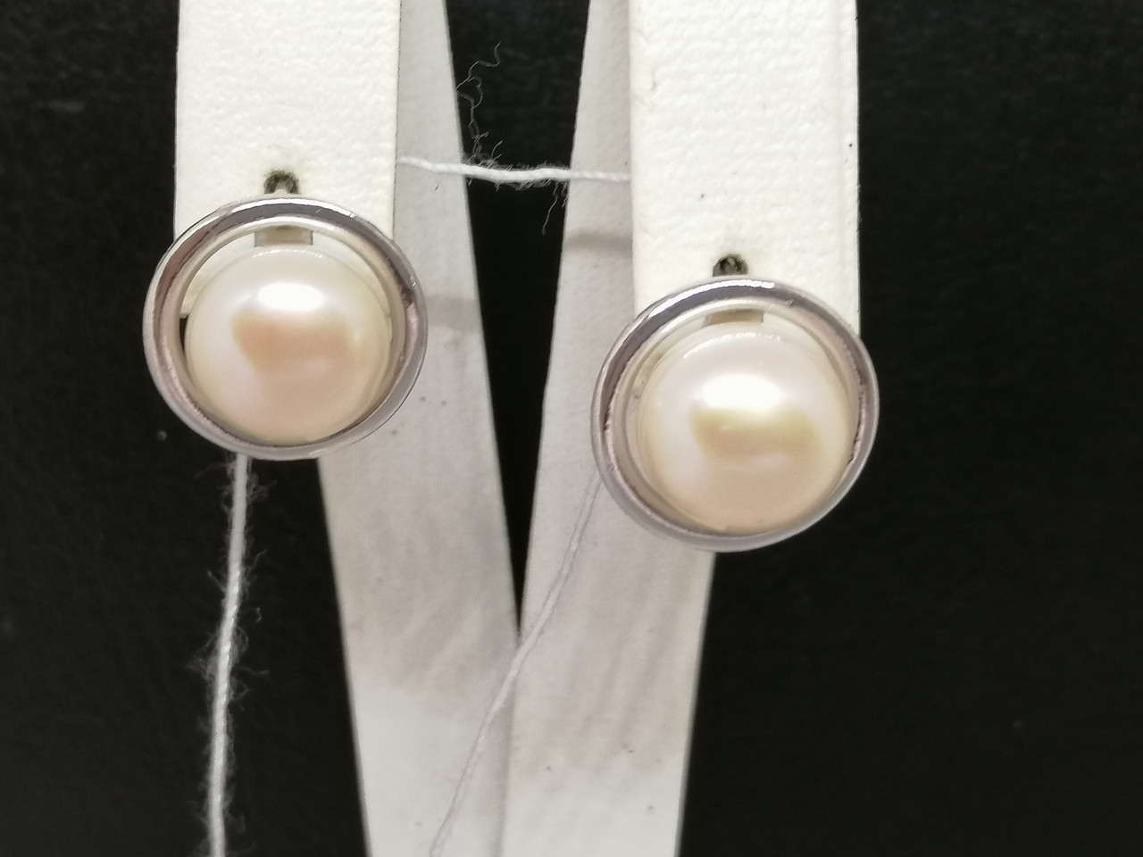 Сережки з білого золота 585 проби з перлами
